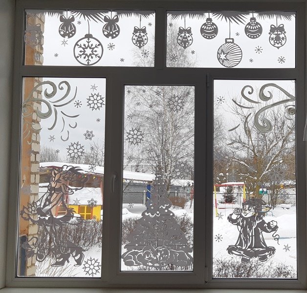 В МДОУ детский сад «Солнышко» к новогоднему празднику прошел конкурс украшения окон под названием «Зимняя сказка». Дети, педагоги и родители создали на окошках атмосферу волшебства, сказочные пейзажи. Пришла зима волшебная, как сказка, со свитой из снежинок-балерин, и белая пушистая окраска накрыла ветки инеем ворсин.