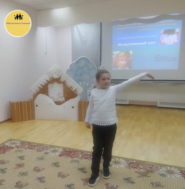 21 декабря 2023 года в МДОУ "Синяя птица" прошла районная конференция исследовательских проектов детей: "Я – исследователь". Проектная и исследовательская деятельность — одни из самых эффективных видов деятельности детей, который положительно влияет на развитие умственной активности и творческой самостоятельности. Дети старшего дошкольного возраста выступили со своими проектами, где представили опыты и эксперименты своей работы. Наша воспитанница детского сада "Солнышко" Даша Кириченко представила свой проект под названием: "Искусственный снег". Даша очень интересно и эмоционально рассказала о том, как изготовить искусственный снег в домашних условиях в преддверии Нового года. Показала, какие поделки и украшения можно изготовить в подарок к празднику. Выступление прошло удачно!